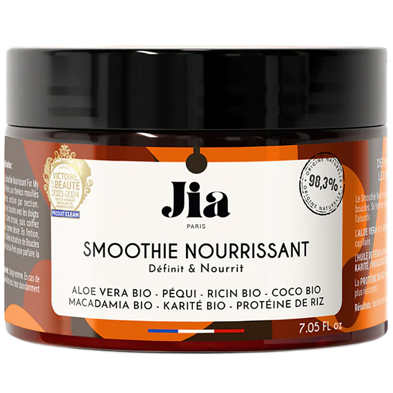 Le Smoothie Nourrissant For My Curls de Jia Paris, récompensé du NHA Prize du Meilleur Hydratant à la Natural Hair Academy 2023 et d’un Prix Produit Clean aux Victoires de la Beauté 2024, est un soin incontournable pour les cheveux bouclés, frisés ou crépus (types 3 et 4) en quête d’hydratation intense et de définition parfaite. Enrichi en Aloe Vera bio, Beurre de Karité et Huile de Péqui, sa texture légère et aérienne, presque mousseuse, nourrit la fibre capillaire, enrobe chaque boucle sans l’alourdir et assure une hydratation longue durée. Il revitalise les boucles, redéfinit leur forme naturelle et les rend rebondies, souples et brillantes. Formule Vegan & Clean – Ingrédients Bio – 100/100 sur Yuka