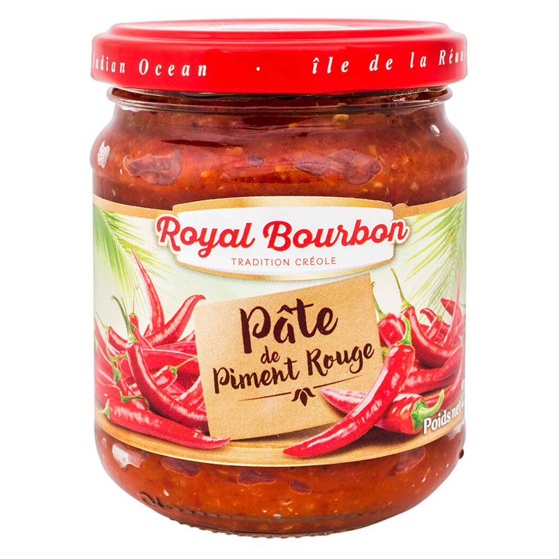 Ce pot contient du piment rouge mûri sous le soleil de la Réunion ainsi que du gingembre et du combava. La marque Réunionnaise Royal Bourbon a pour fondement de respecter la tradition créole dans l’élaboration de leurs recettes. Vous pourrez ainsi suivre cette initiative en accompagnant votre rougail de cette pâte de piment, le carri, les bouchons mais aussi tous les autres plats que vous voudrez!